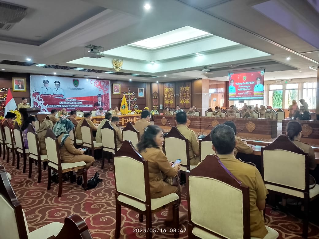 TALAWANG NEWS, PALANGKA RAYA – Pemprov Kalteng melalui Dinas Kependudukan dan Pencatatan Sipil (Disdukcapil) melakukan sosialisasi Informasi Pengelolaan Adminduk dan Launching Identitas Kependudukan Digital (IKD), di Aula Eka Hapakat Kantor Gubernur Kalteng, Selasa (16/5/2023).