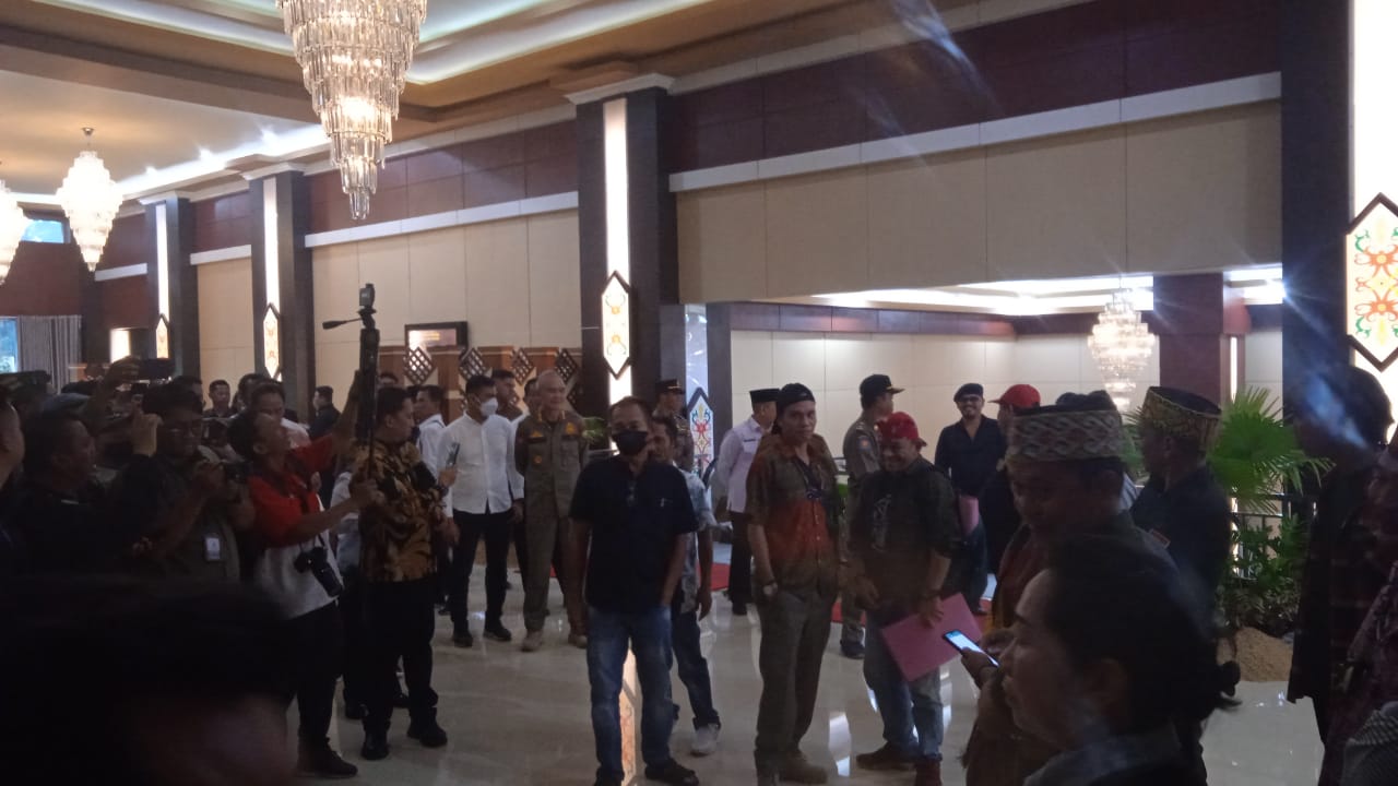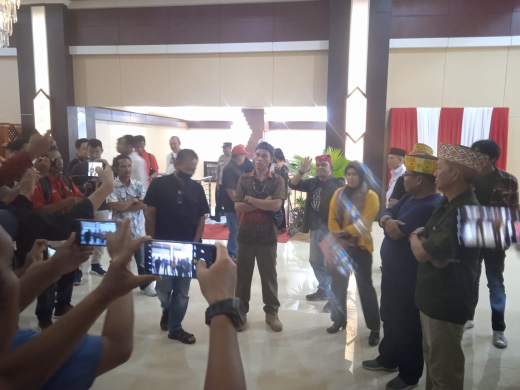 FOTO : Suasana Di depan Aula Jayang Tingang saat di datangi beberapa perwakilan masyarakat Kalteng dimana kegiatan tersebut adalah aksi penolakan terkait Pelantikan Pj Bupati Barsel dan Kobar.