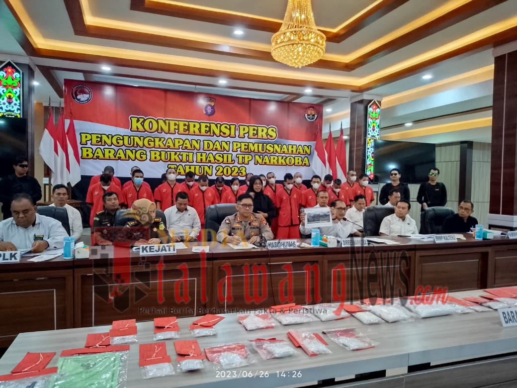 TALAWANG NEWS, PALANGKA RAYA – Upaya pemberantasan peredaran gelap narkoba, ditengah masyarakat terus dilakukan oleh pihak Polda Kalteng, hal tersebut terbukti yang mana terlihat pada kali ini pihaknya melakukan pengungkapan Tipidnarkoba dan TPPU Polda Kalteng dan jajaran pada bulan APRIL hingga JUNI 2023 serta hasil operasi “ANTIK TELABANG-2023”, di Aula Arya Dharma Polda Kalteng, Senin (26/6/2023).