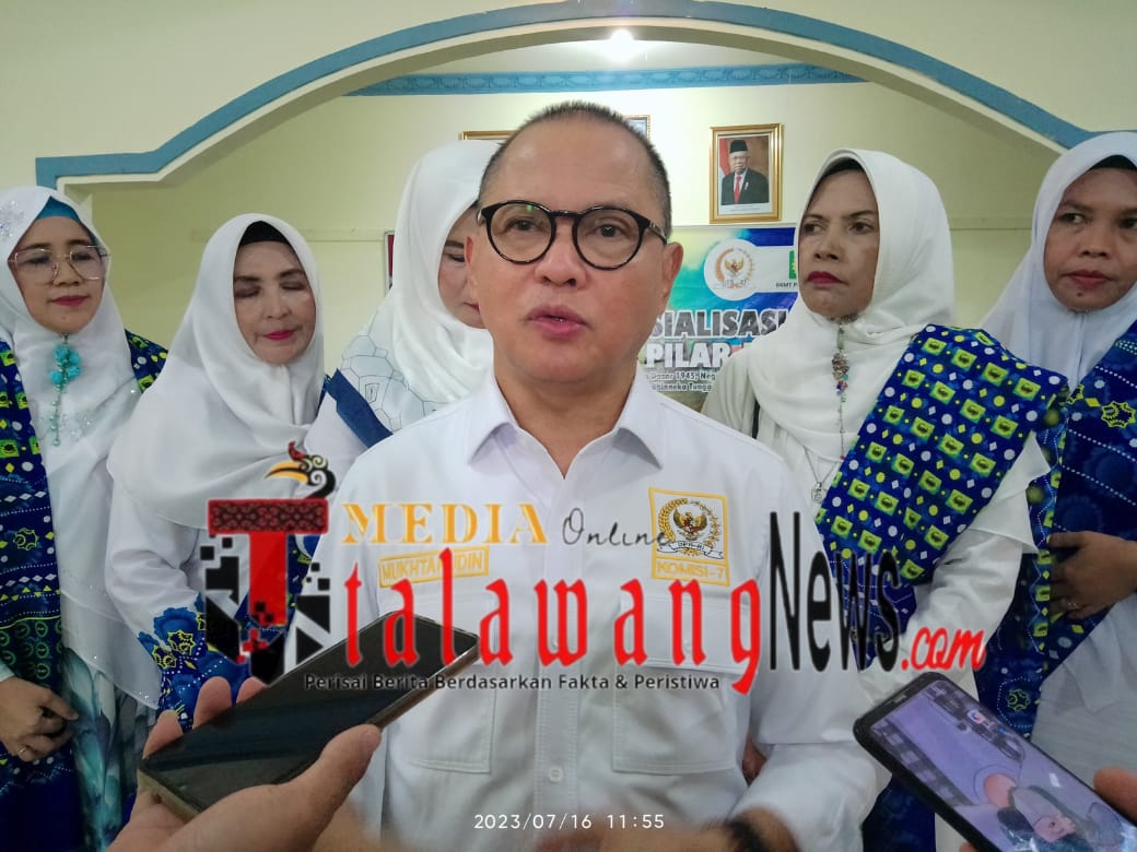 TALAWANG NEWS, PALANGKA RAYA – Anggota Komisi VII DPR RI Dapil Kalimantan Tengah Drs. H. Mukhtarudin menggelar sosialisasi 4 Pilar Pancasila, UUD 45, NKRI dan Bhineka Tunggal Ika di Aula Batu Suli Internasional Hotel Palangka Raya, Minggu (16/7/2023).