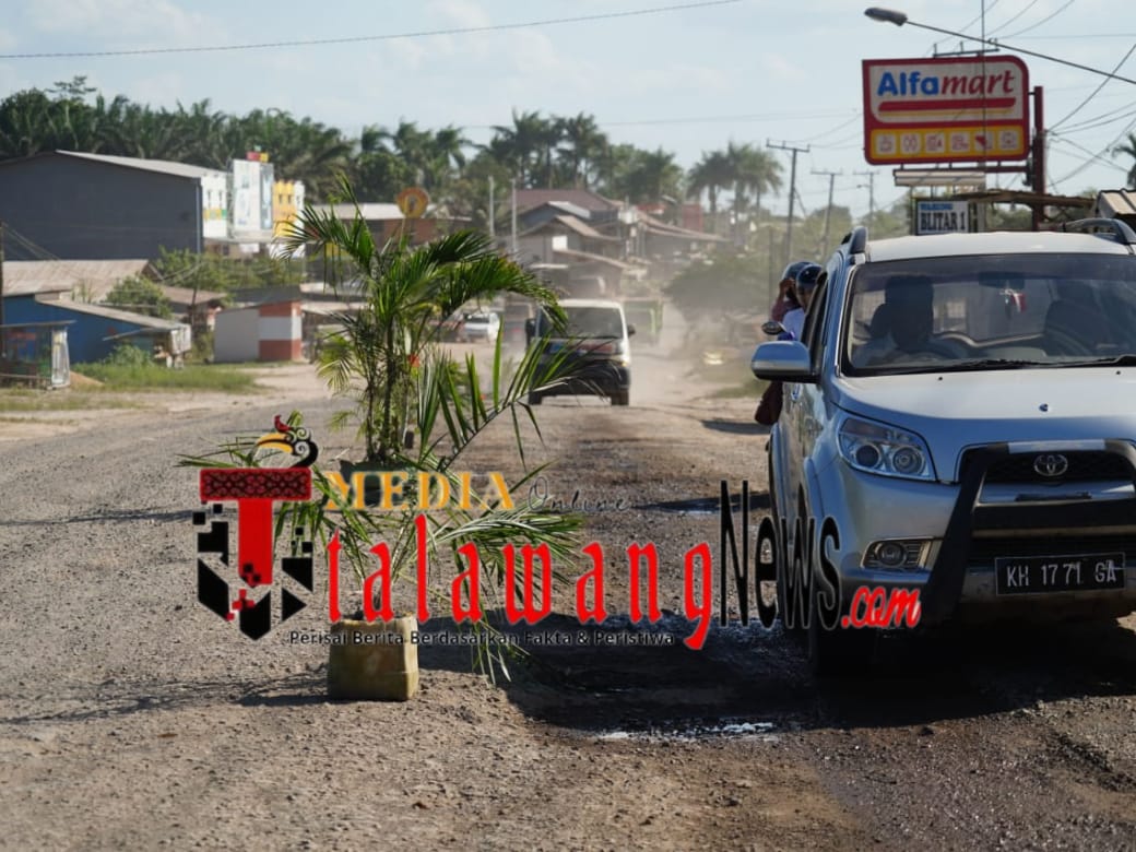 TALAWANG NEWS – PALANGKA RAYA – Poros jalan nasional sepanjang 1.200 meter di Desa Karang Mulya Kecamatan Pangkalan Banteng Kabupaten Kotawaringin Barat, ditanami warga dengan pohon pisang dan sawit.