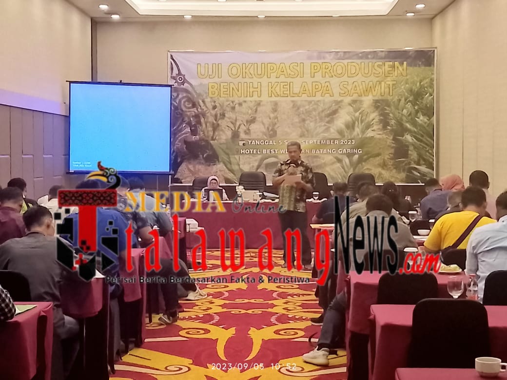 TALAWANG NEWS, PALANGKA RAYA – Dinas Perkebunan Provinsi Kalimantan Tengah (Kalteng) melalui UPT Balai Perlindungan Perkebunan dan Pengawasan Benih Tanaman Perkebunan Provinsi Kalteng mengadakan uji okupasi produsen benih kelapa sawit. Acara tersebut dilaksanakan di Best Western Batang Garing Hotel Palangka Raya pada Selasa (05/09/2023).