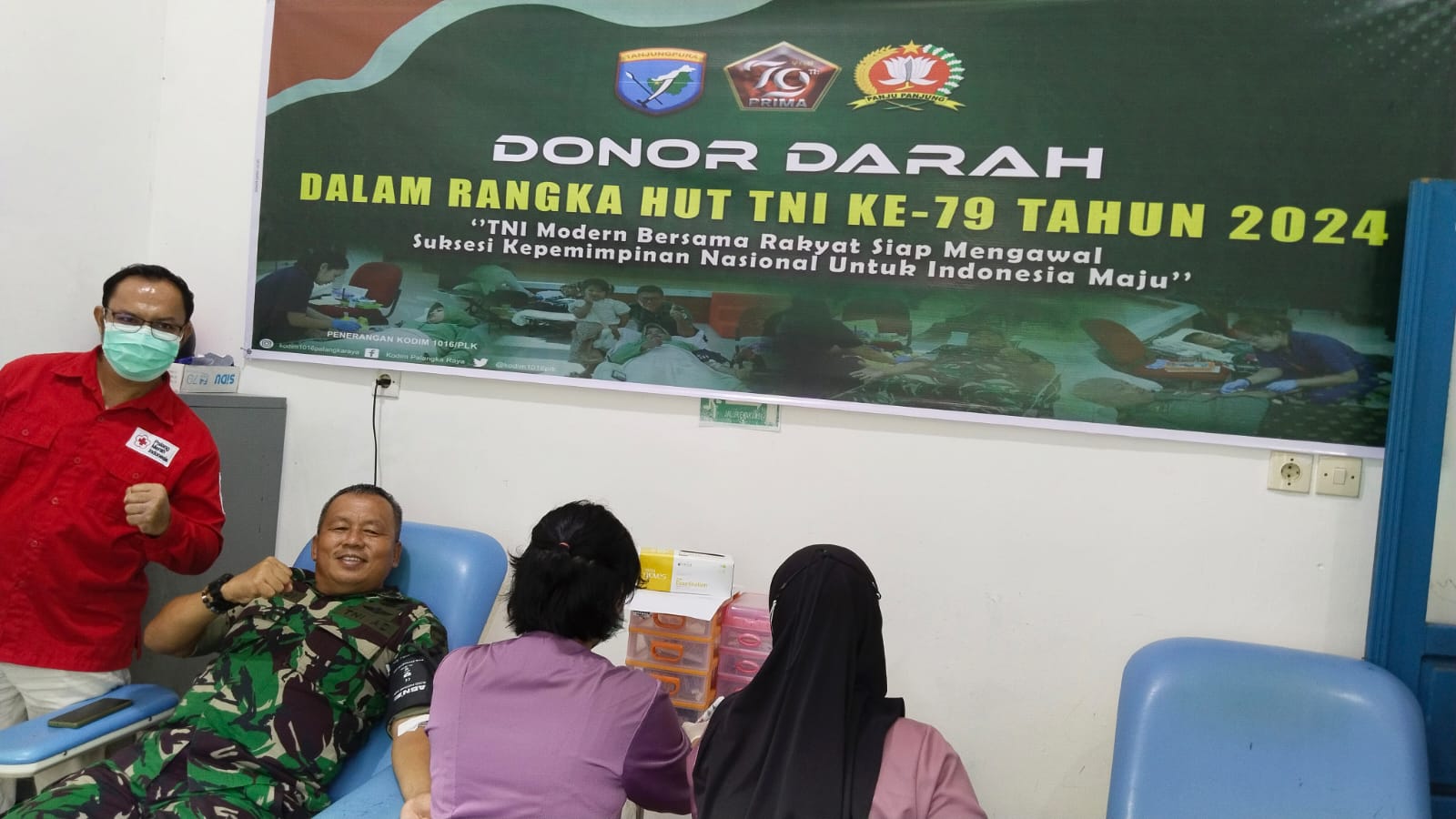 Gunung Mas, TalawangNews.com – Dalam rangka wujud nyata sinergi antara TNI dan masyarakat dalam menjaga kesehatan dan keselamatan bersama serta masih dalam rangkaian perayaan Hari Ulang Tahun ke-79 Tentara Nasional Indonesia (TNI), pada Kamis, (10/10) anggota Koramil jajaran Kodim 1016/Plk melaksanakan kegiatan donor darah di Instalasi Transfusi Darah RSUD Gunung Mas. Kegiatan ini diikuti oleh anggota Koramil 1016-06/Kurun, Koramil 1016-07/Tewah, Polres Gunung Mas, dan BPBD Gunung Mas.