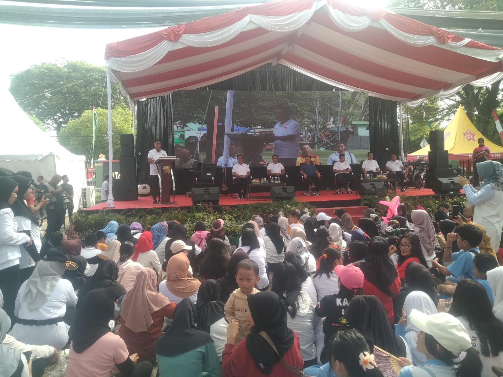 Ratusan masyarakat tumpah ruah mengikuti gerak jalan santai diantaranya Ormas, Pelajar, dan juga TNI-Polri serta masyarakat umum yang ikut memeriahkan acara tersebut. Puluhan door prize dan hadiah juga disiapkan untuk di undi sesuai kegiatan jalan santai.