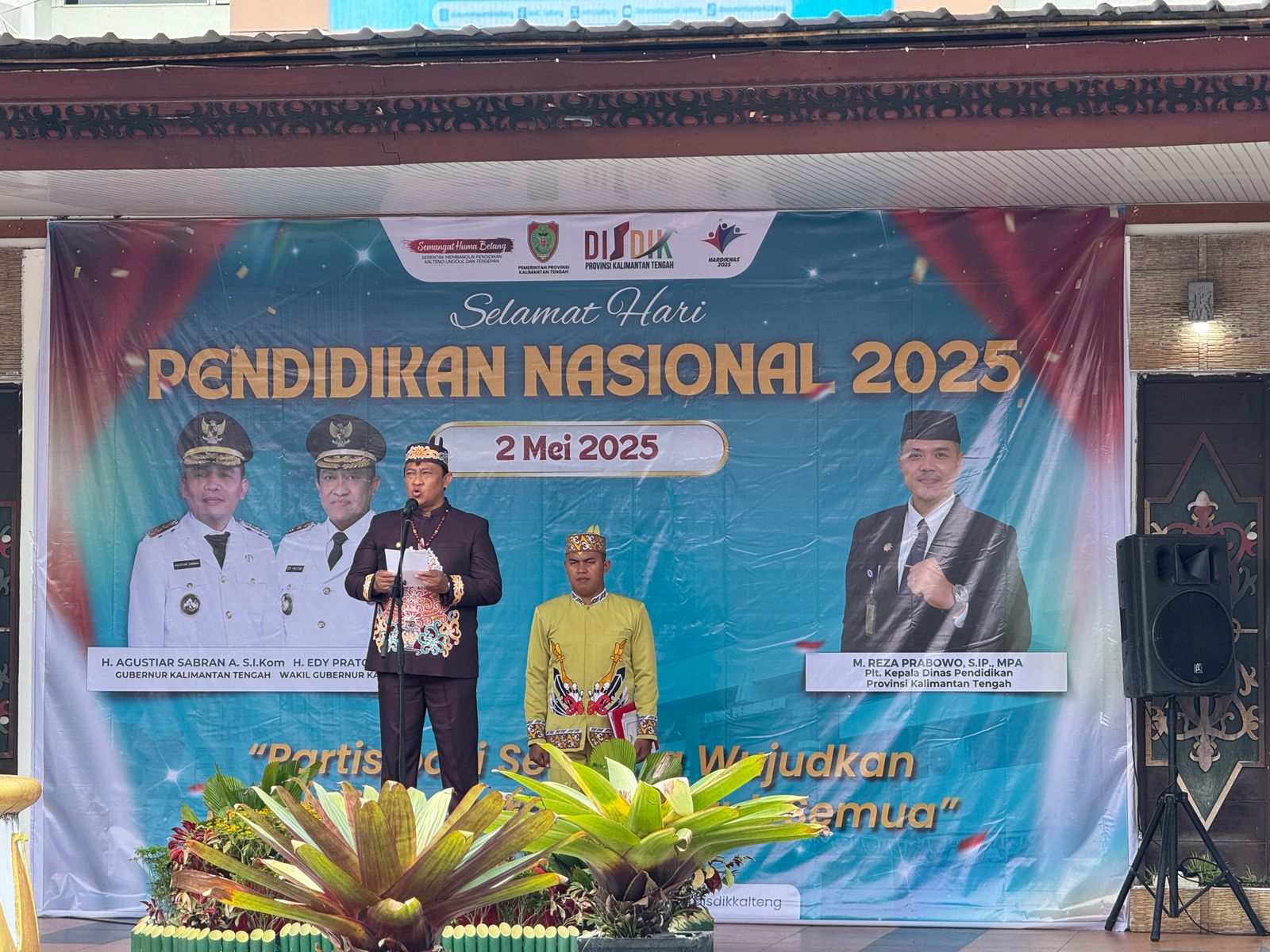 Wakil Gubernur Kalimantan Tengah, Edy Pratowo, hadir sebagai inspektur upacara dan membacakan sambutan dari Menteri Pendidikan Dasar dan Menengah, Abdul Mu’ti.