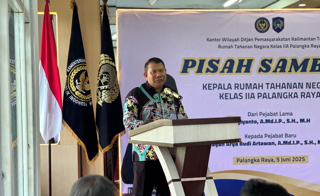 Talawang News, Palangka Raya – Kepala Kantor Wilayah Direktorat Jenderal Pemasyarakatan Kalimantan Tengah, I Putu Murdiana menghadiri acara pisah sambut Kepala Rumah Tahanan Negara (Rutan) Kelas IIA Palangka Raya yang digelar pada Kamis (5/6).