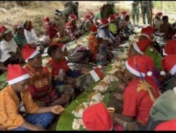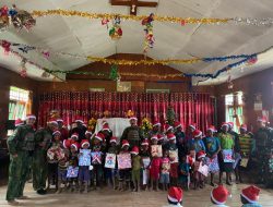 Berbagi Kasih Menjelang Perayaan Natal, Satgas Yonif 631/Atg Bagikan Bantuan Sembako dan Pakaian ke Warga Intan Jaya